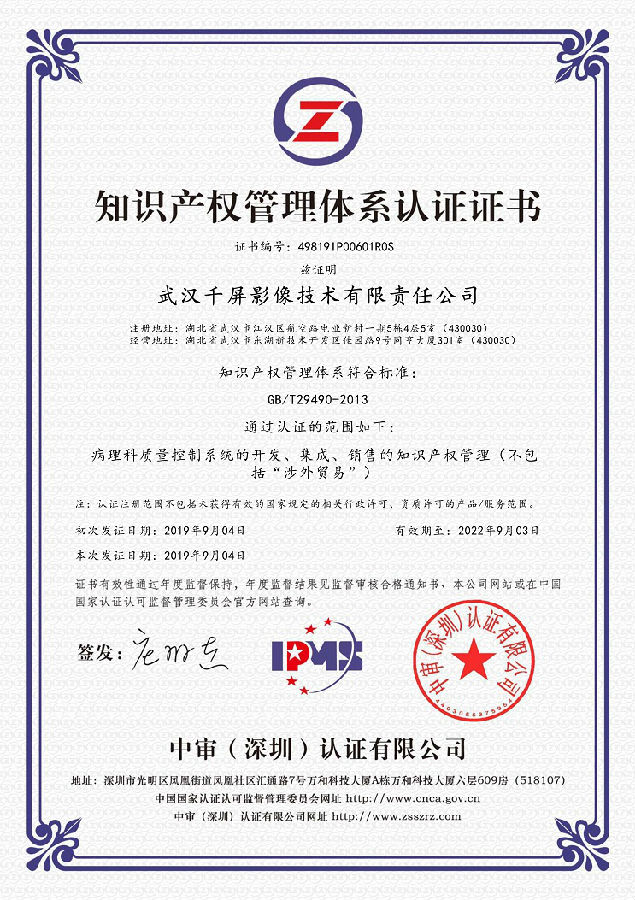 熱烈祝賀武漢千屏影像技術(shù)有限責(zé)任公司于2019年9月獲得知識(shí)產(chǎn)權(quán)貫標(biāo)認(rèn)證證書,公司在知識(shí)產(chǎn)權(quán)管理體系的建立、實(shí)施工作中取得階段性成果,意味著公司知識(shí)產(chǎn)權(quán)的規(guī)范進(jìn)入常態(tài)化。