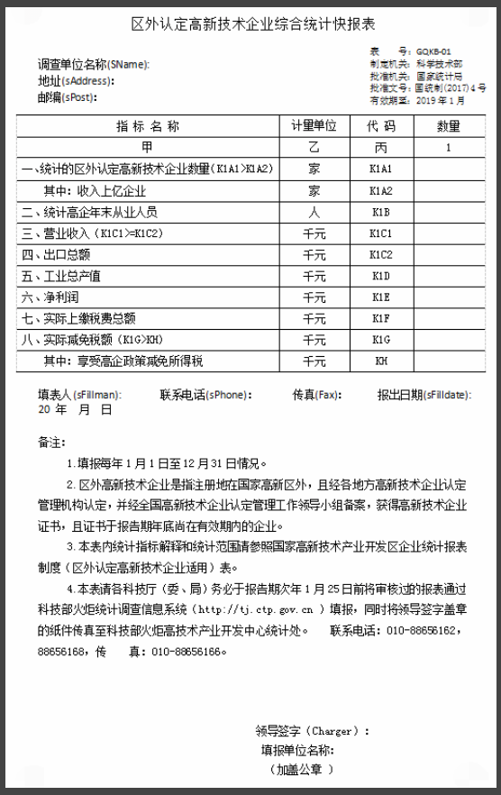 國家科技部火炬統(tǒng)計(jì)報(bào)表填寫